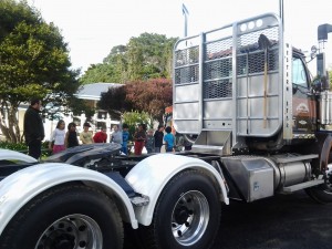 Kowhai class were lucky enough to see this mad machine up close this week. Mr Sparksman carts logs with this truck, it was put designed in Canada and together in Melbourne and we learnt that it has a VERY loud horn!!